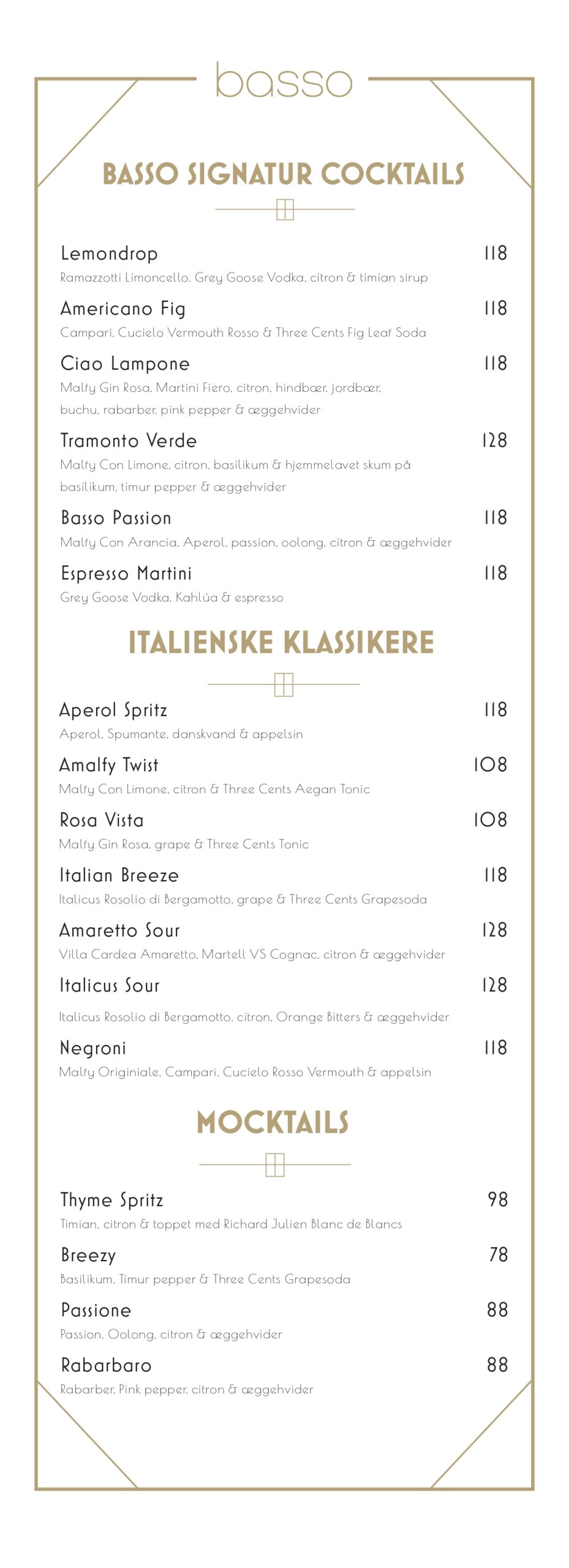 non-alcoholic menu