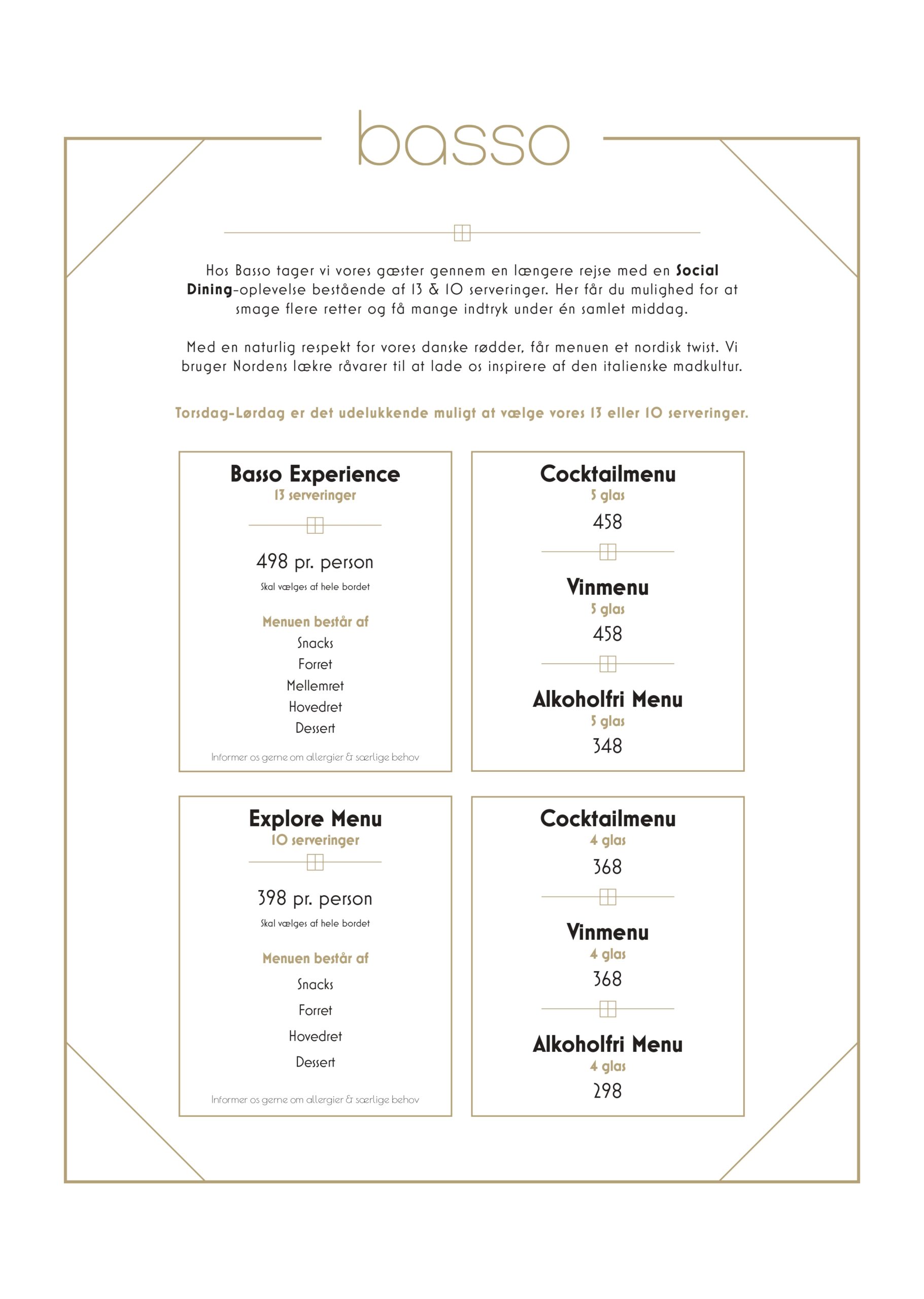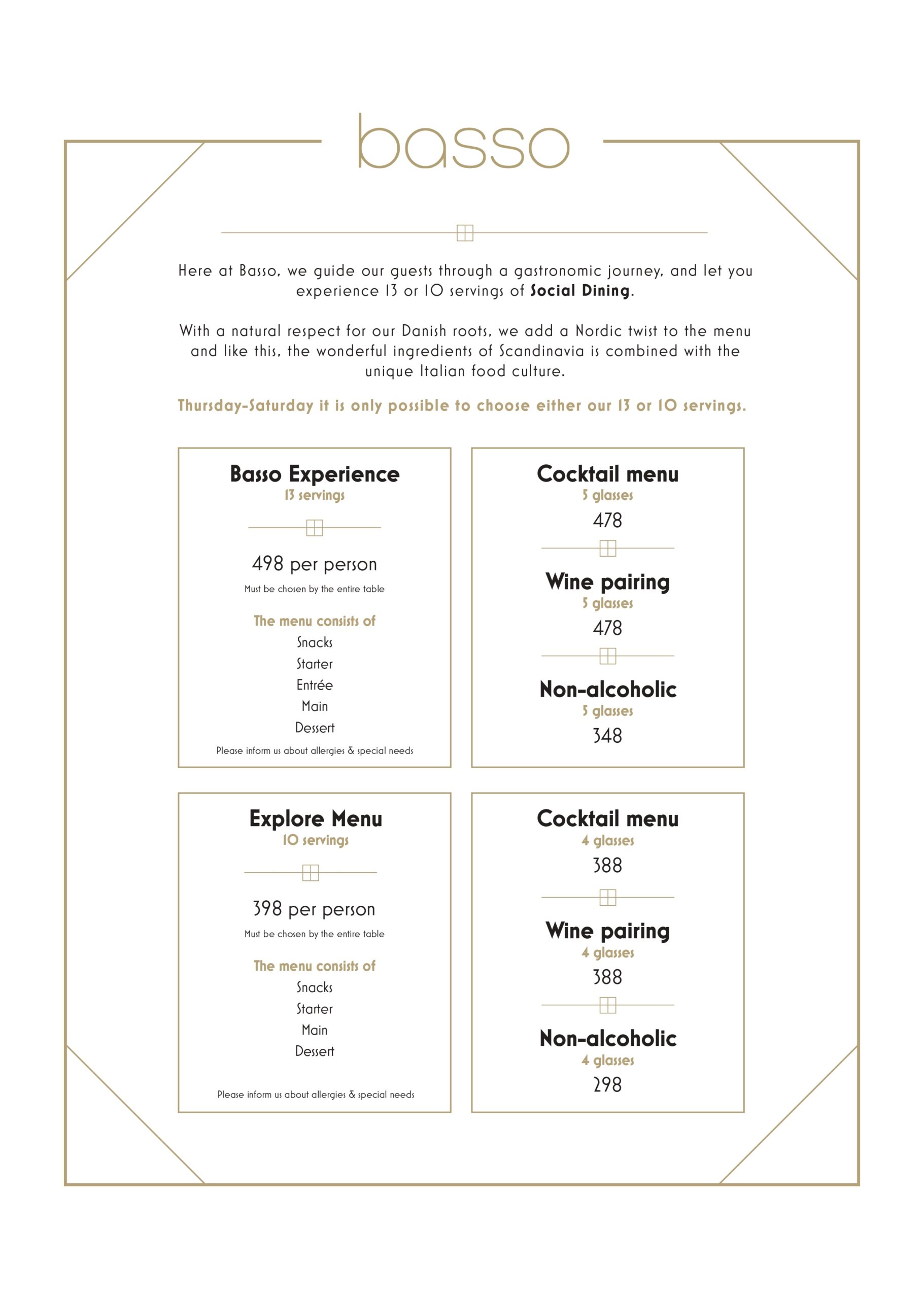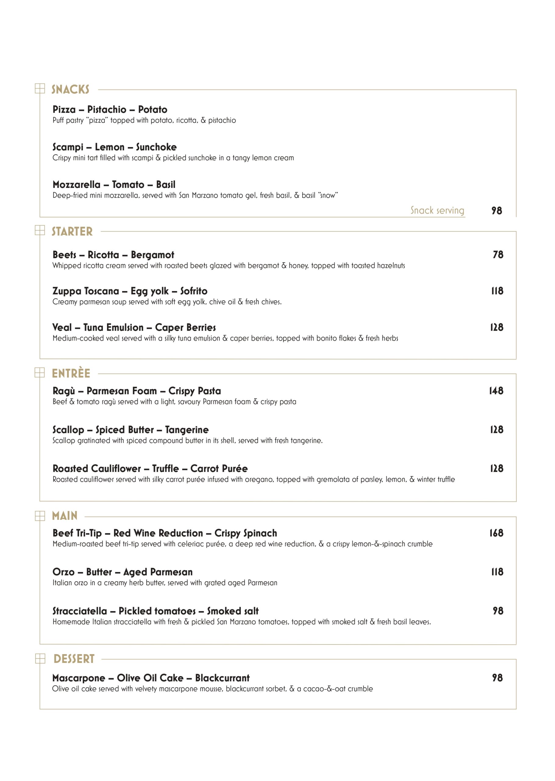 Please note that on Sundays we only serve ours Sunday Tasting menu.