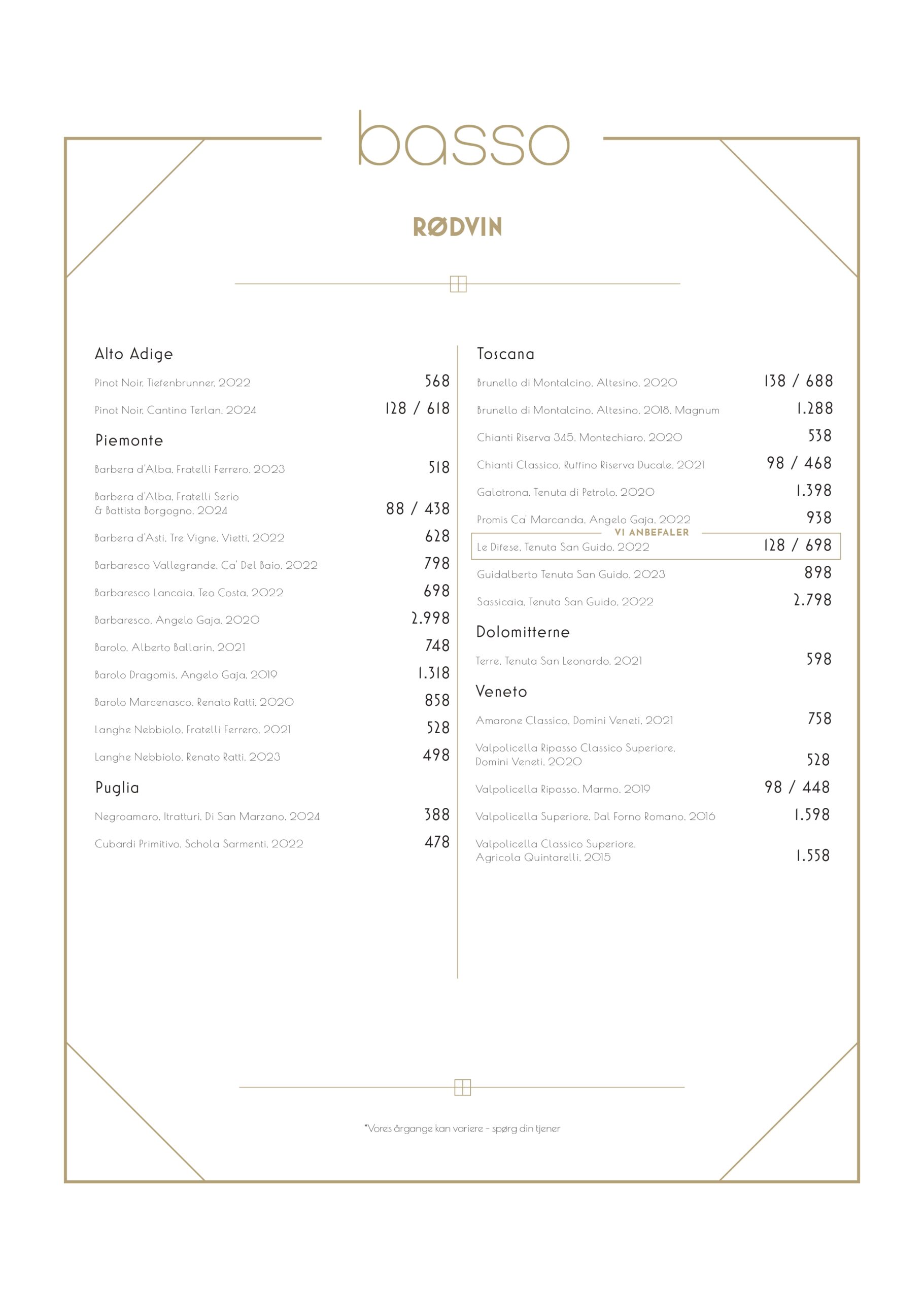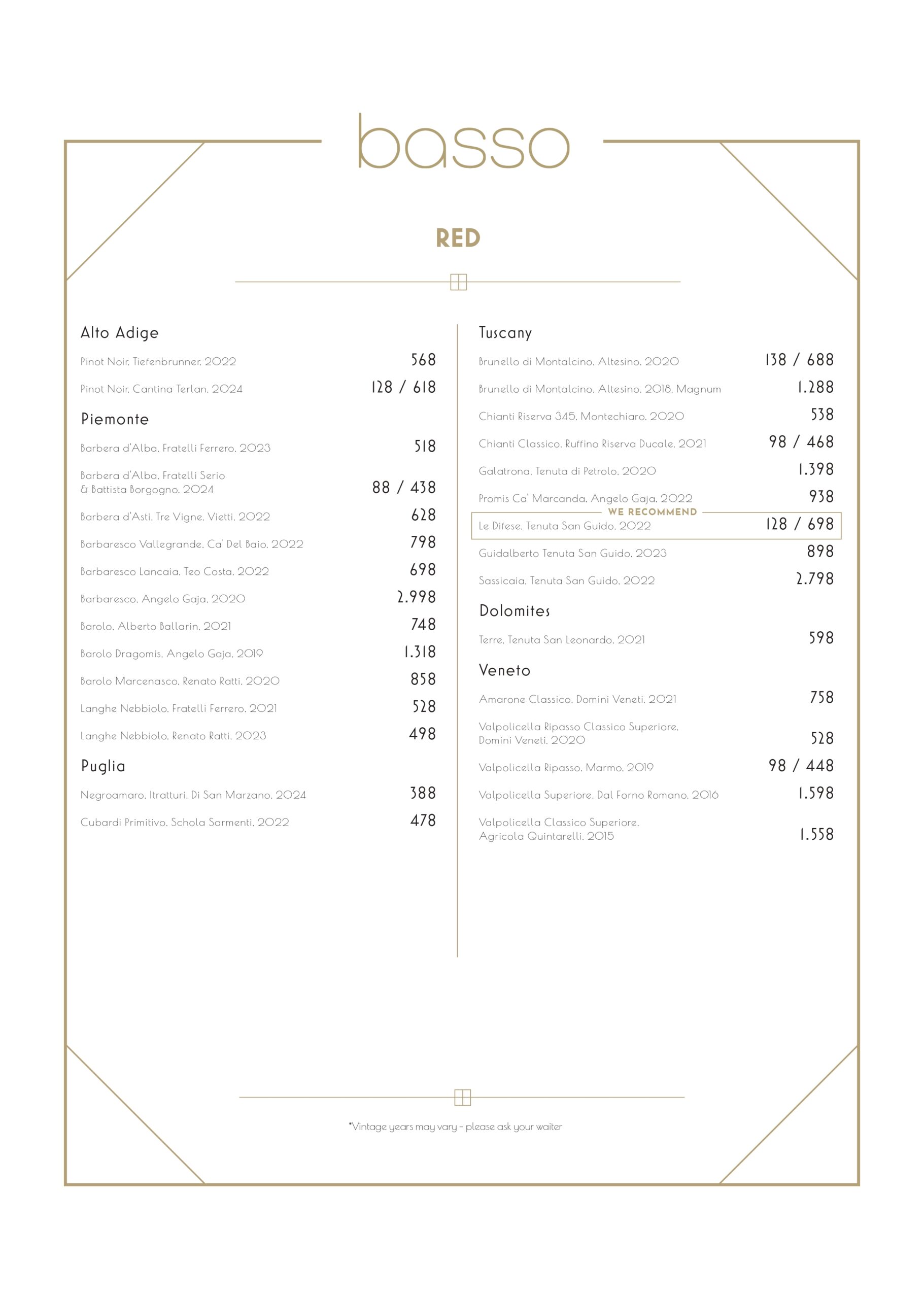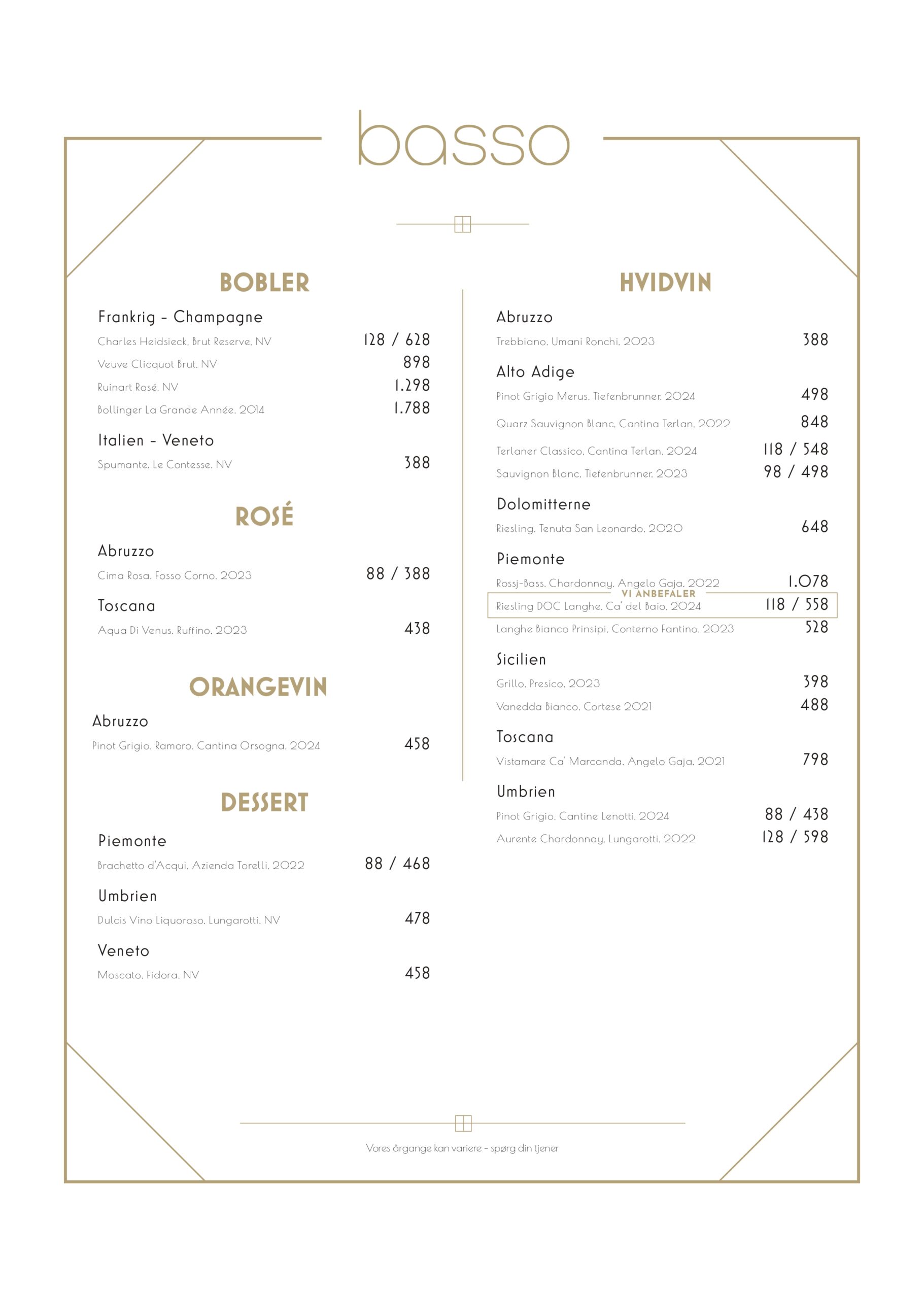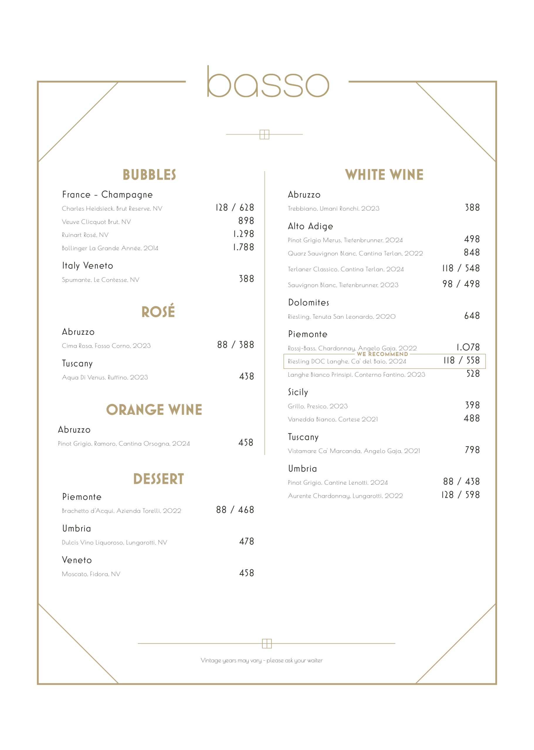 Wine menu